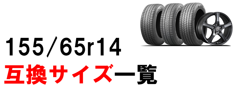 155/65R14装着の車に互換可能なサイズは以下の通り。
