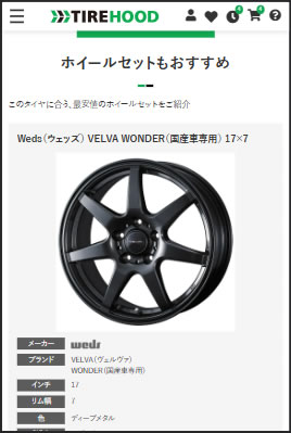 「ホイールセットもオススメ」という項目が出てくるので、ここでホイールを選択するとホイールセットが買えます。