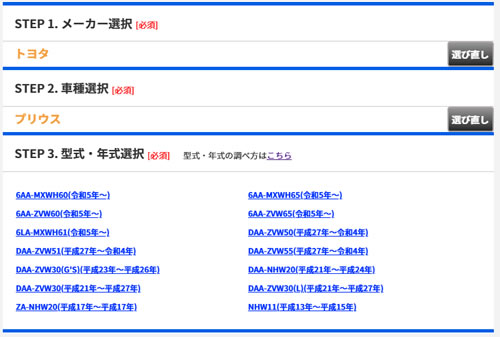 こちらも車種から選べば、間違わないのはオートウェイと同じ。