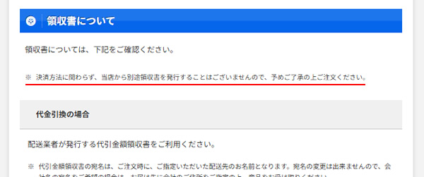 つまりは商品に同梱している領収書以外は領収書は発行しないってことです。ややこしい。