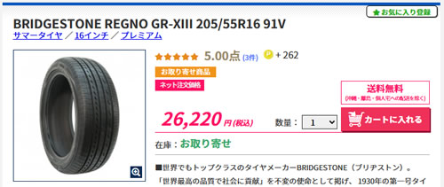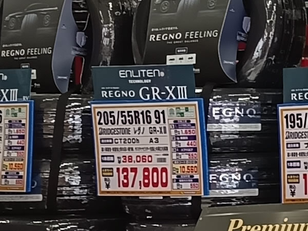 イエローハットで販売されていたブリヂストン レグノGR-XIII(ダンロップじゃなくてごめん)。