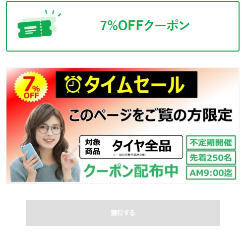 タイヤフッドの7%OFFクーポンは超レアキャラ