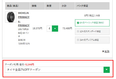 公式サイトのクーポンを使った方が安くタイヤを買えるでしょう。