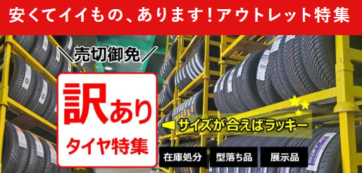 タイヤフッドにはアウトレットコーナーがあり、在庫処分品や型落ち品などが特別価格で販売されています。