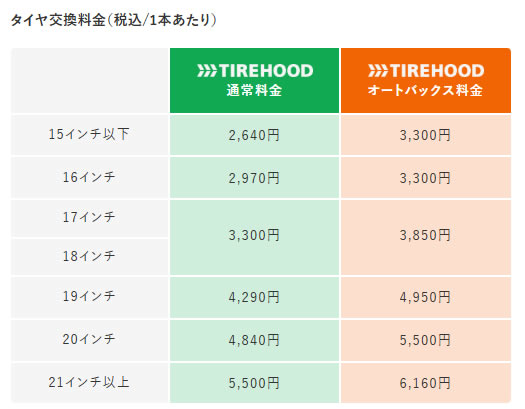 でも廃タイヤ処分料を含めたら、タイヤフッドのほうが安いです。