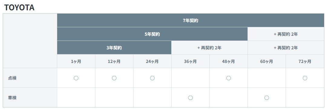 KINTOで受けられるメンテナンスのスケジュールは以下の通りです。
