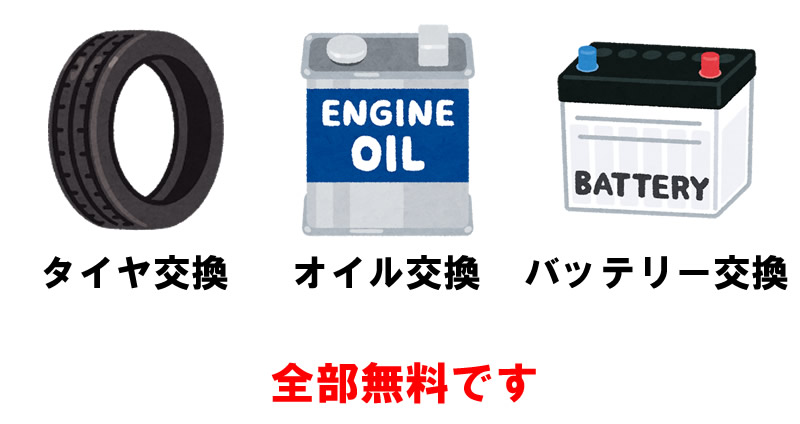 タイヤ・オイル・バッテリー交換も無料