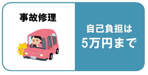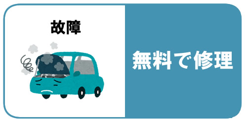 故障修理は無料、事故でも自己負担は5万円までで、代車も出ます。