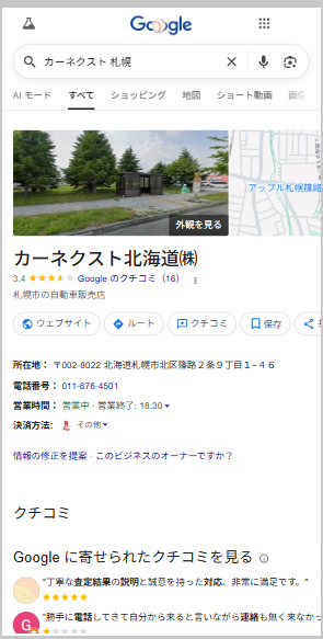 ちなみに検索で表示される「カーネクスト北海道」は別会社です。